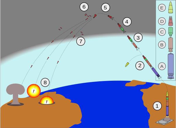 На першому фото приблизна демонстрація як РС-26 виходить на ціль, розділяється на частини, а потім як сама бойова частина розділяється на багато маленьких гіперзвукових боєприпасів, які в “оригіналі” ракети мають спеціальну бойову частину. Тобто ядерну.