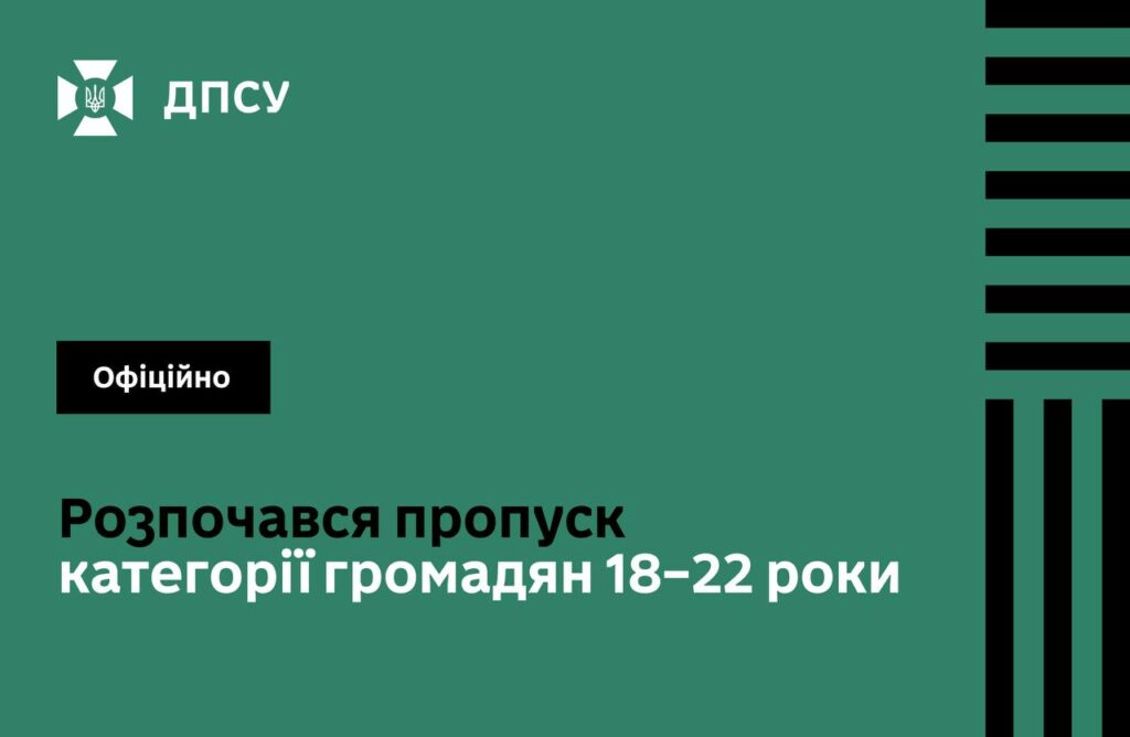 28 серпня набирають чинності зміни до Правил перетинання державного кордону у частині виїзду чоловіків віком до 22 років включно. Відповідно до Постанови Кабінету міністрів, Держприкордонслужба безперешкодно пропускатиме таких громадян для виїзду за кордон. Для цього потрібно мати закордонний паспорт та пред’явити на вимогу прикордонників військово-обліковий документ у паперовій чи електронній формі.