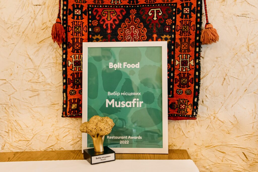- Номінація «Вибір місцевих»: найулюбленіший ресторан жителів столиці – Musafir.