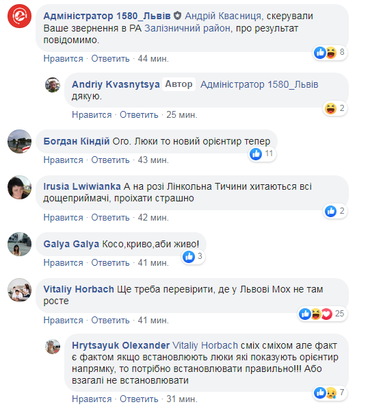 “Прошу провести інструктаж з відповідальним персоналом, встановити люк правильно, а в ідеалі — не закупляти люки з декоративними зображеннями, які можуть бути трактовані як інформаційні”, – зазначається у тексті звернення на “Гарячу лінію міста Львова” у ФБ.