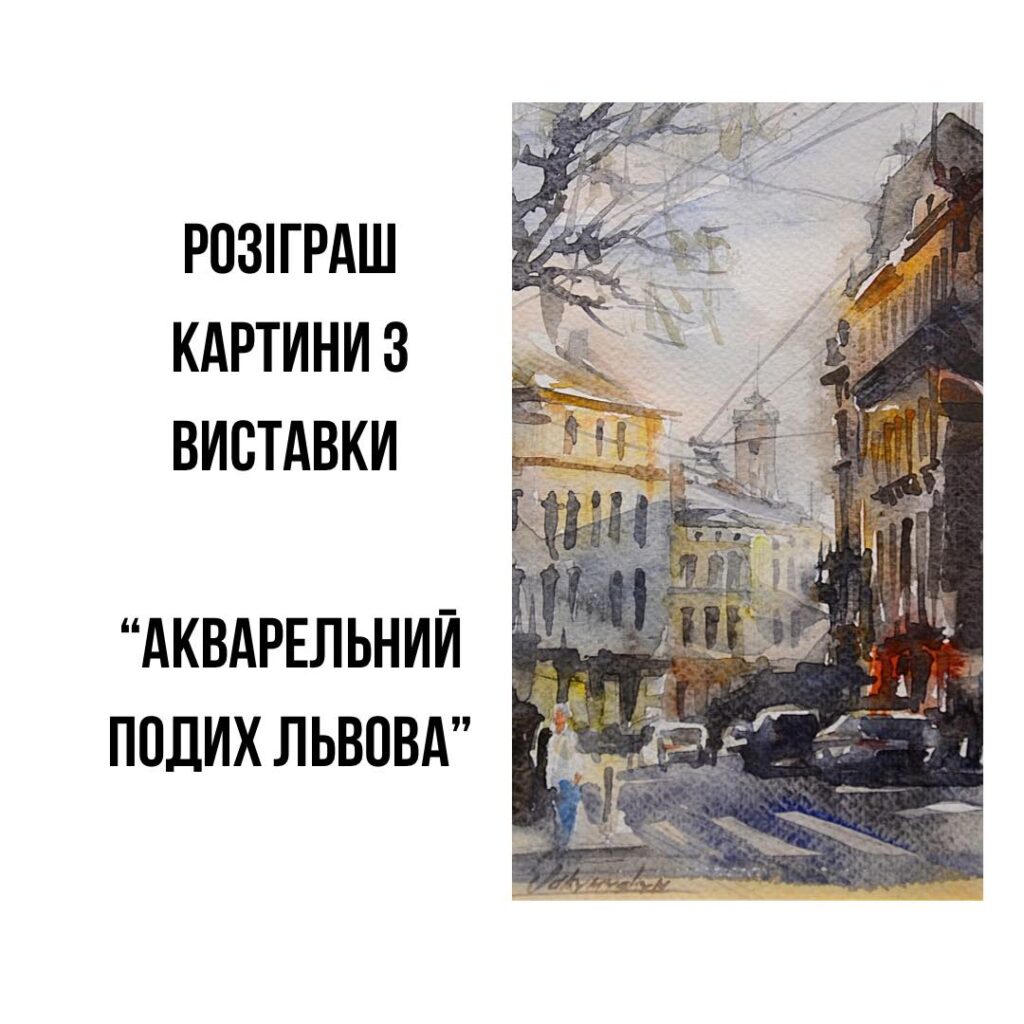 Для участі в розіграші потрібно роздивитись акварелі і графічні роботи на виставці Валерія Якимишина, вгадати і на спеціальній схемі вписати, які локації Львова зображені на картинах та свої контактні дані.