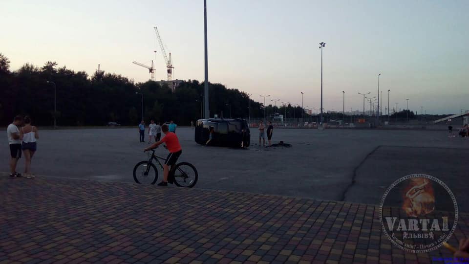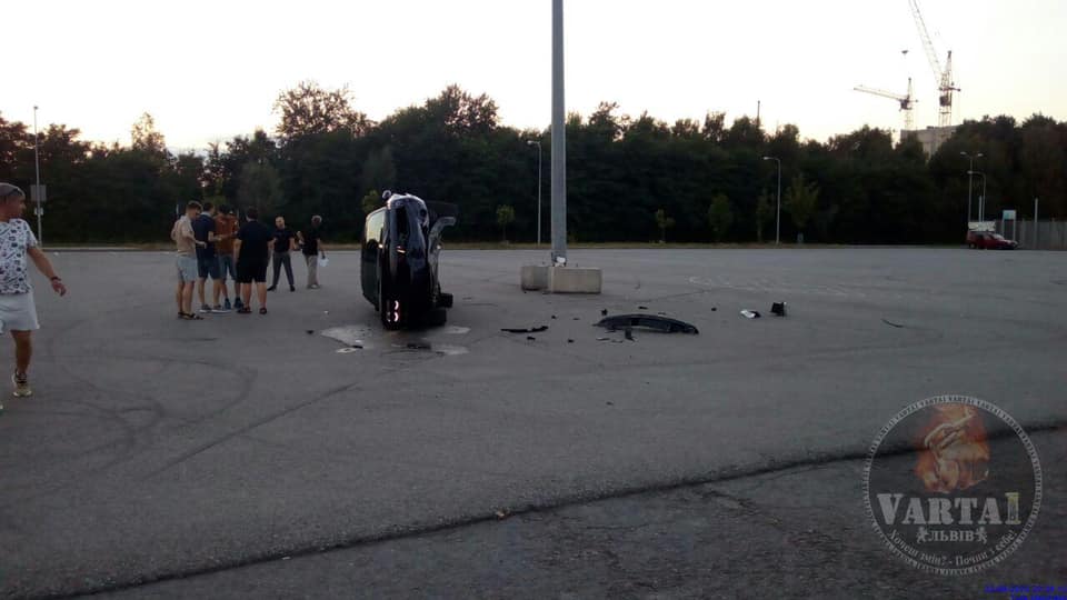 Поблизу “Арени Львів” водій, дрифтуючи, в’їхав у стовп і перекинулася.
