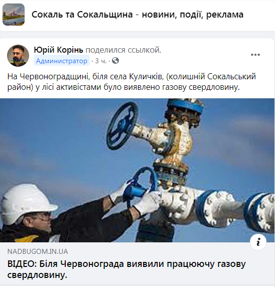 На Червоноградщині, біля села Куличків, (колишній Сокальський район) у лісі активістами було виявлено газову свердловину.