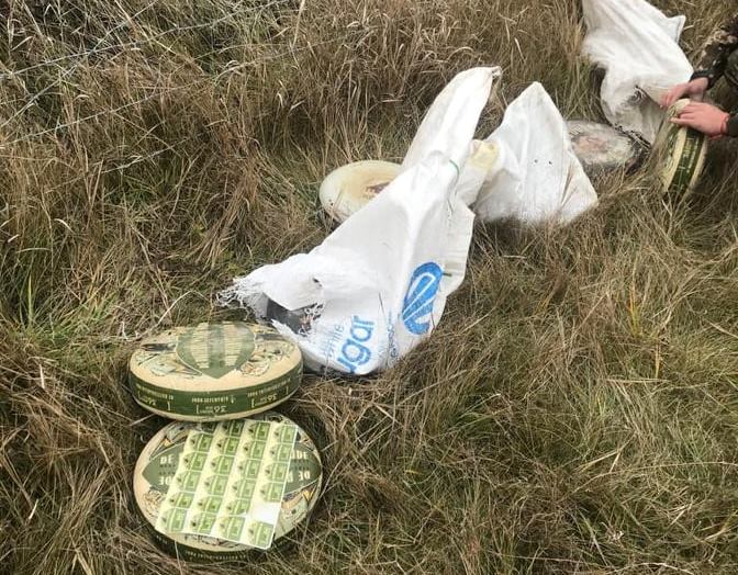 Прикордонники виявили в районі населеного пункту Попівка біля загороджувального паркану 7 десятикілограмових головок сиру з маркуванням «Old Amsterdam», «De Rotterdamsche Oude» та «Prima Donna» нідерландського виробництва.
