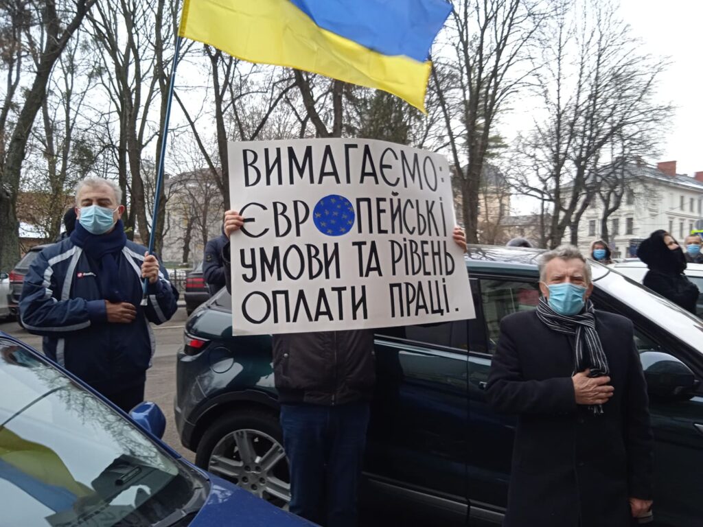 Об’єднання профспілок Львівщини повідомляє на своїй сторінці у ФБ, учасники акції висувають такі вимоги: