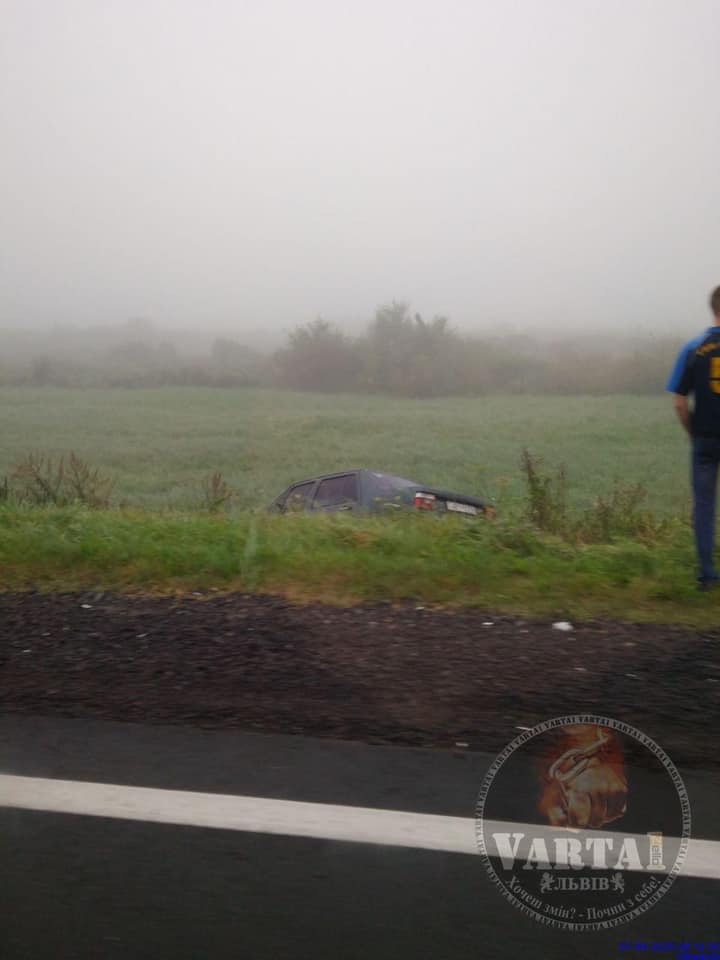 На Львівщині внаслідок ДТП автомобіль злетів у кювет.