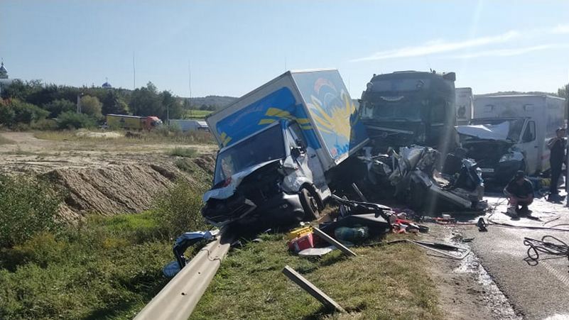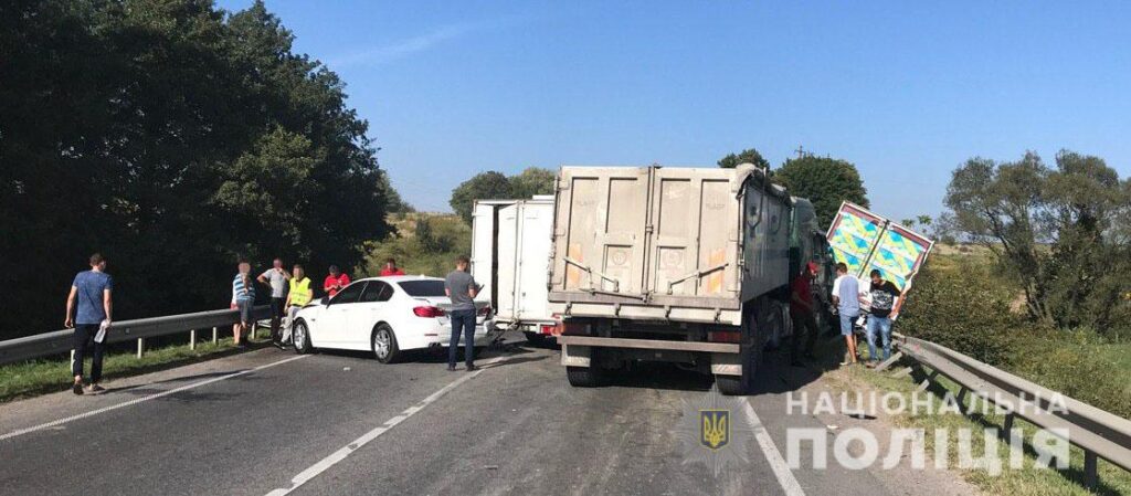 За інформацією відділу комунікації Головного управління національної поліції у Львівській області, дорожньо-транспортна пригода сталась сьогодні, 16 вересня близько 14.40. Як попередньо встановили правоохоронці, зіткнулись шість транспортних засобів – дві вантажівки, два мікроавтобуси та два легкових автомобіля – «БМВ» та «Рено». Усі транспортні засоби рухались у попутньому напрямку.