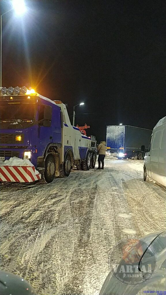 Як йдеться у повідомленні, на в’їзді у Винники з Тернополя витягують вантажівку.