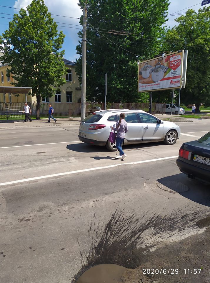 У Львові на перехресті вулиць Широка – Сяйво жебраки просять у водіїв автомобілів гроші.
