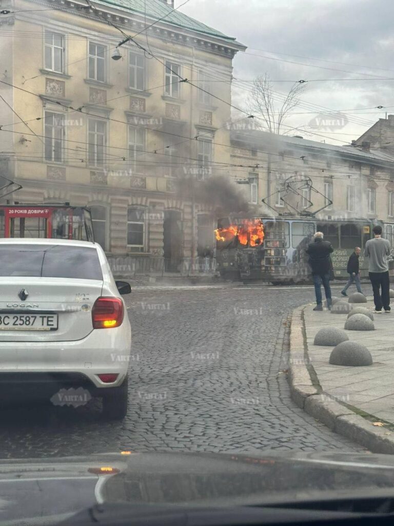Львів: загорівся трамвай на площі Митній, ніхто з людей не постраждав