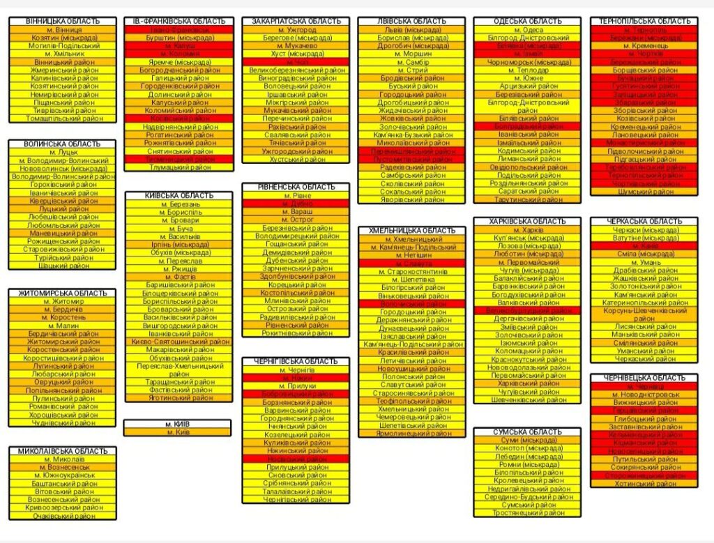 З 00 годин 00 хвилин 14 вересня (понеділок) почне діяти нове епідемічне зонування.