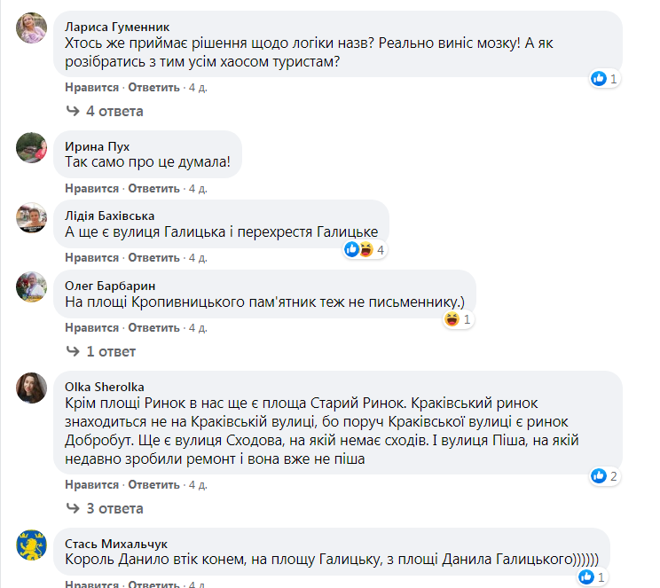 Приклад – у Львові є площа Данила Галицького і площа Галицька. Це різні площі і розташовані вони в різних місцях. Туристи їх постійно плутають, добре, що ці площі недалеко одна від одної.