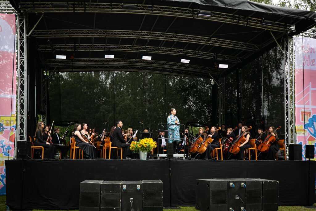 У програмі прозвучать твори українських композиторів: Скрипковий концерт Томаса де Гартмана, а також «Мелодія» Мирослава Скорика, «Гімн» Валентина Сильвестрова та «Симфонієта» Євгена Станковича, а також «Увертюра» Гражини Бацевич, кілька ноктюрнів Фридерика Шопена та «Скерцо-Тарантела» Генрика Венявського.