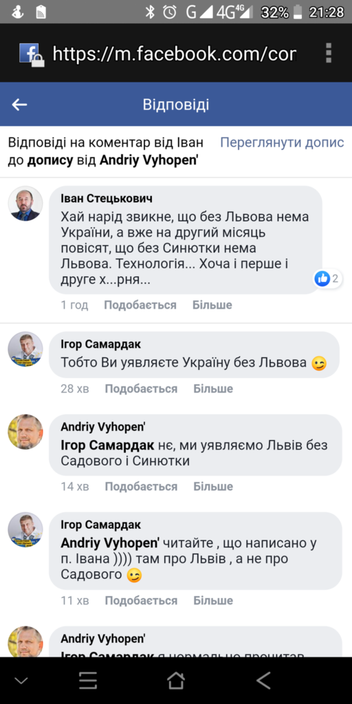 “Хай народ звикне, що без Львова нема України, а вже на другий місяць повісять, що без Синютки нема Львова. Технологія.. Хоча і перше, і друге – х@рня”, – йдеться у коментарі.