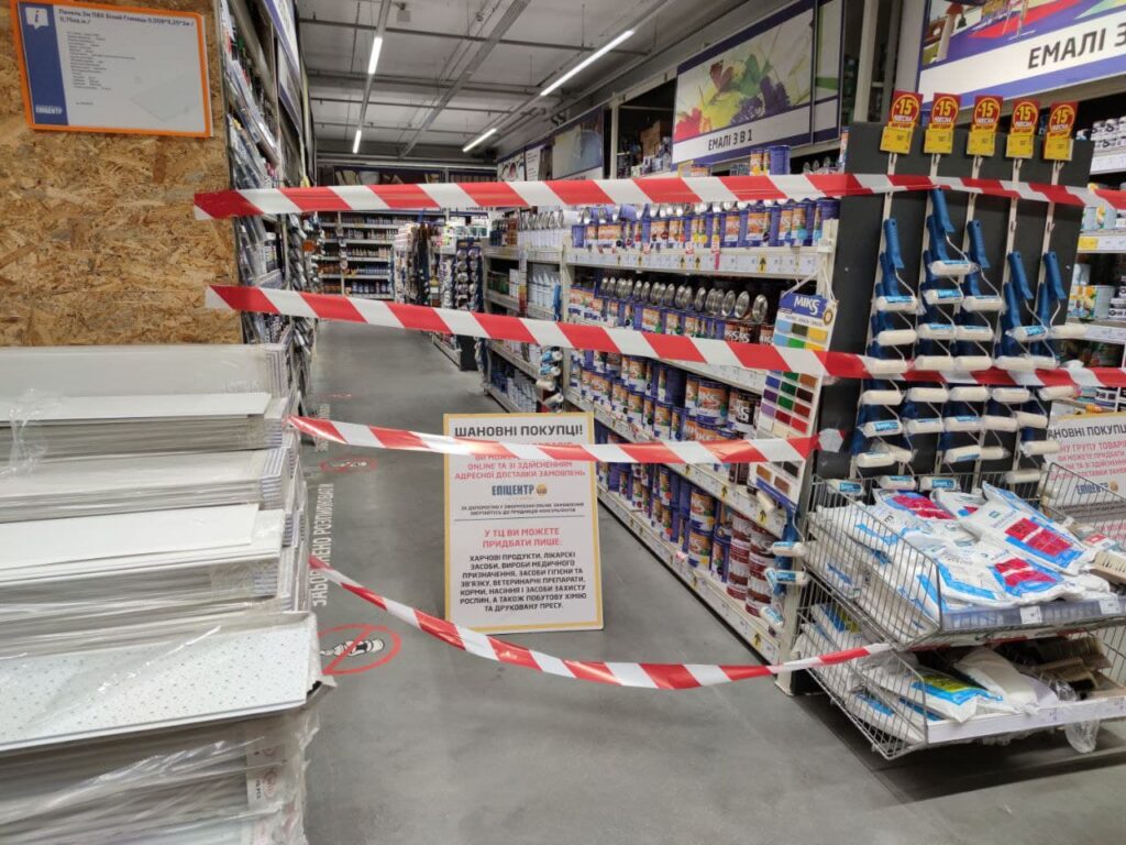 “Відкритий тільки центральний прохід, в якому продаються продукти, дозволені до продажу. Ряди з будматеріалами закриті стрічками і написано, що можете придбати тільки онлайн”, – розповів кореспондент.