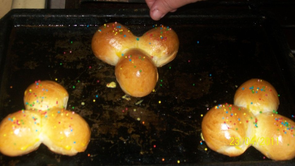 На Радехівщині і Сокальщині пекли печиво трійця. Це об’єднані в одне три кульки. Їх освячували у великодньому кошику і з нього розпочинали Великодню трапезу.