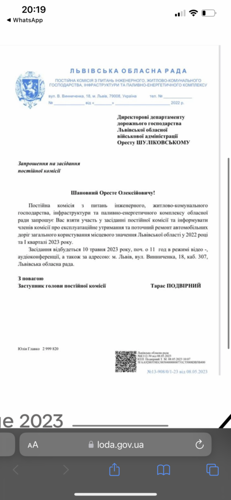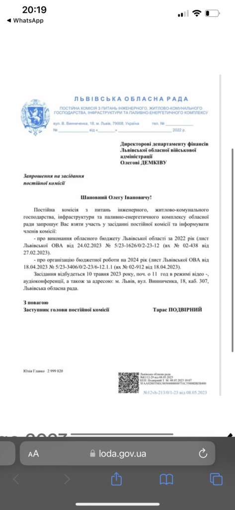 Звертаємо увагу депутатів фракції «Батьківщина» у Львівській обласній раді на те, що на комісії були присутні представники департаменту фінансів, департаменту дорожнього господарства та департаменту економічної політики Львівської ОВА, які і були запрошені на засідання комісії. Долучаємо запрошення до цього матеріалу.