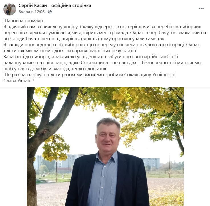 За попередніми даними головою Сокальської ОТГ став Сергій Касян, а Белзьку ОТГ очолить Оксана Береза.