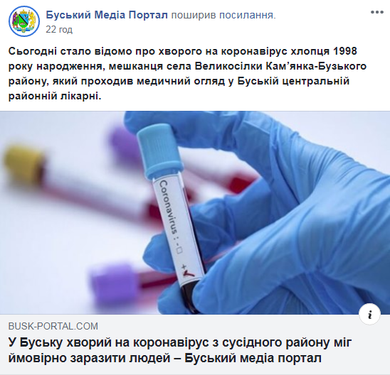 Стали відомі подробиці щодо хворого на коронавірус хлопця 1998 року народження, мешканця села Великосілки Кам’янка-Бузького району, який проходив медичний огляд у Буській центральній районній лікарні.
