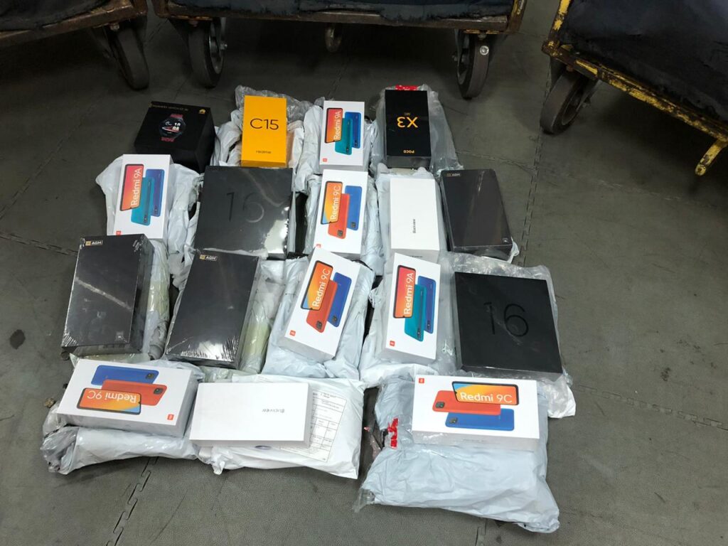 В аеропорту “Бориспіль” 30 жовтня 2020 року співробітники Державної митної служби затримали 700 нелегальних посилок з мобільними телефонами, планшетами та іншою технікою відомих брендів, які завозилися до України на фіктивних одержувачів із Сінгапуру через компанію “Укрпошта”.