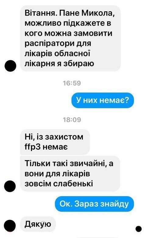 Сприймай це, як моє депутатське звернення до мера мого рідного міста. Чи ці лікарі говорять неправду? Якщо на час публікації цієї статті вони отримали необхідні засоби захисту від COVID-19, то прекрасно. Але навіть у інтерв’ю журналістам твого сайту головний лікар лікарні у Винниках каже: «кожного дня ми щось отримуємо. Звісно, цих запасів недостатньо і їх треба поповнювати». Про брак медичного обладнання говорять і волонтери Львова, які об’єдналися для спільного збору коштів на потреби лікарень. За їх словами, на цей час нагально потрібно придбати засобів медичного захисту на суму, що складає майже 1 млн. грн., зокрема: