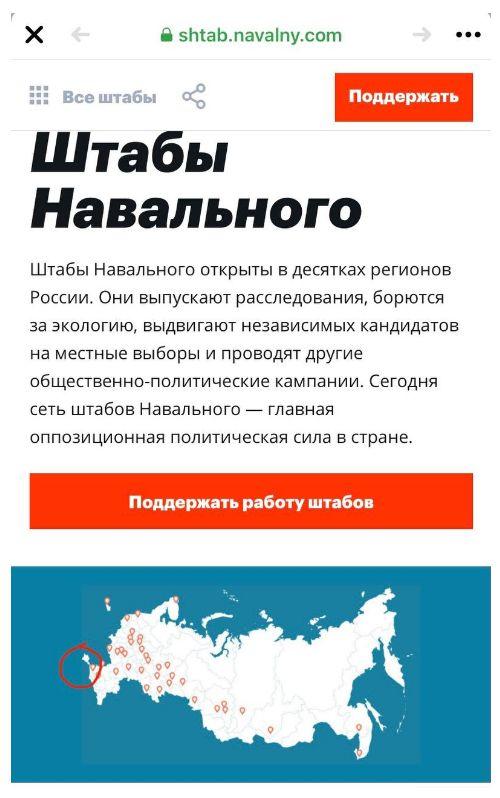 На офіційному сайті команди Навального окупований Росією український півострів Крим внесено на карту як частину Російської Федерації