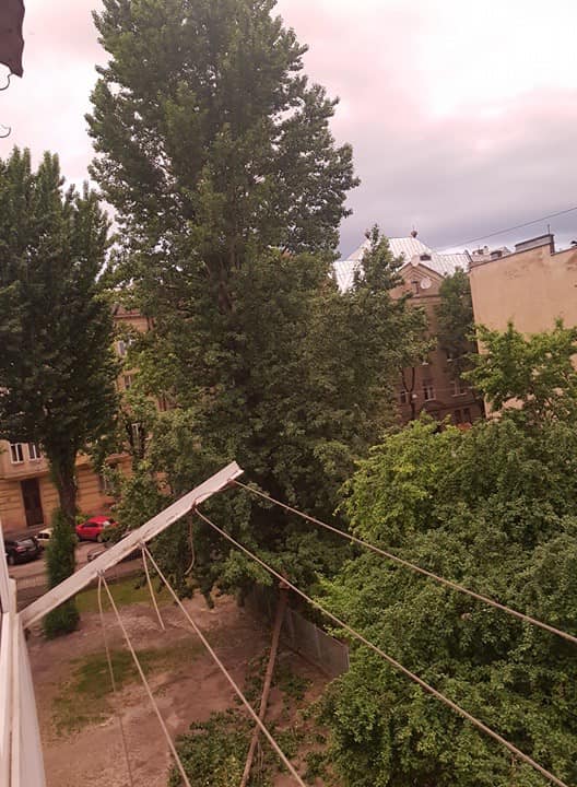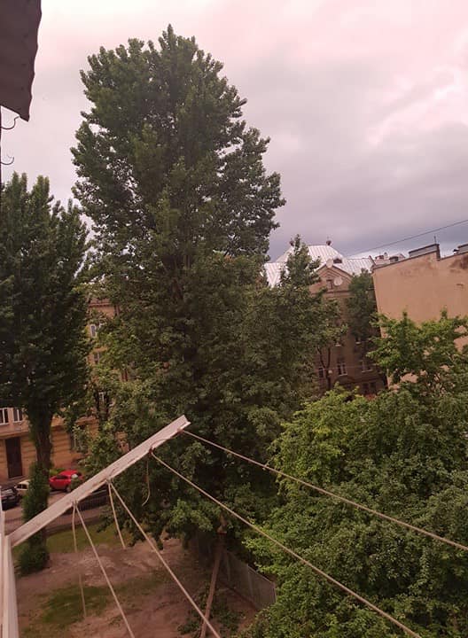 “Після вечірнього дощу 13.06.2020, частина тополі впала на вул. Конопницької з території Департаменту охорони здоров’я Львівської області на дитячий майданчик. Якщо буде сильніша гроза чи сильніший вітер, то дерево впаде знову на дитячий майданчик, але вже точно зачепить будинки 10, 12 по вул.Романчука, як і покрівлю, так і вікна мешканців.