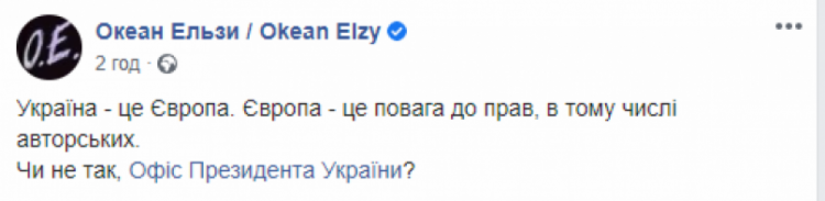 Ще вчора гурт “Океан Ельзи”, який не брав участі в концерті і пісня якого там все одно прозвучала, випустила різкий допис з питанням до Офісу президента.