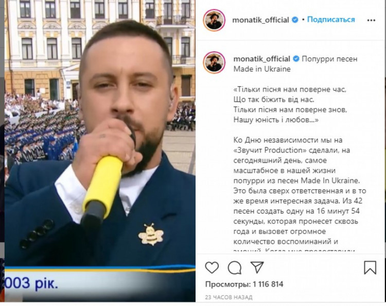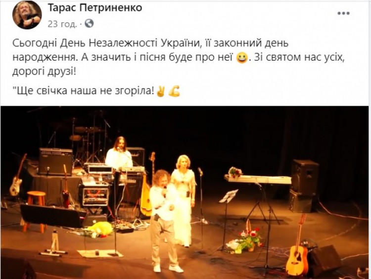 Гурт “Тартак”, які співали пісню “Понад хмарами” з Катею Чілі (вчора її виконала Матвієнко), виклали в себе на сторінці концертний запис із привітанням з Днем Незалежності. А от колишній соліст гурту Олександр Положинський вчора відмовився від ордена, яким його нагородив Зеленський.