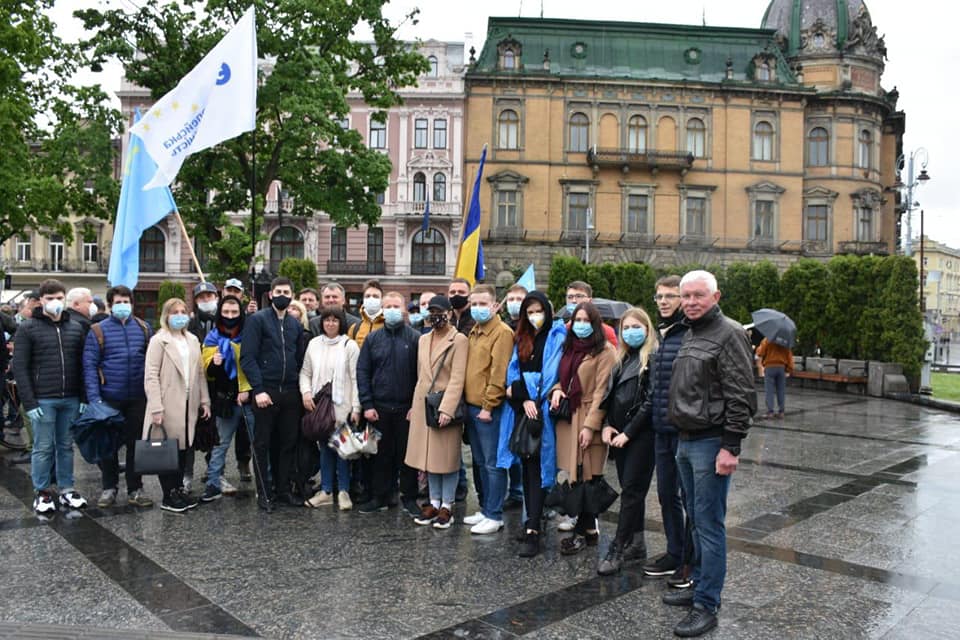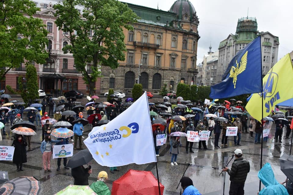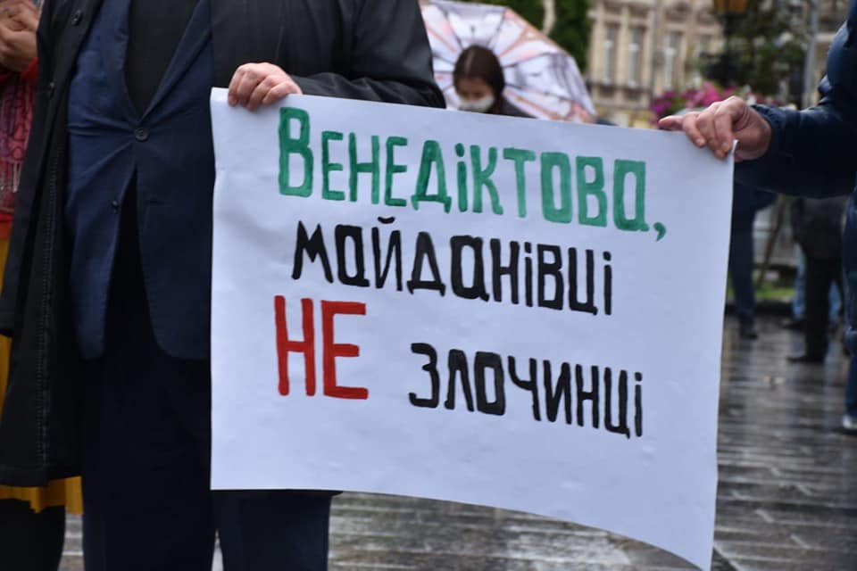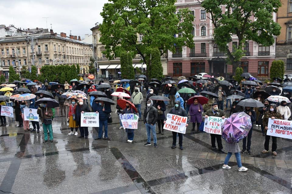 “Велика кількість людей зібралися й у центрі Львова. Звісно з дотриманням усіх карантинних правил. Сьогодні люди вийшли у центр міста, щоб нагадати, що реванш не пройде!