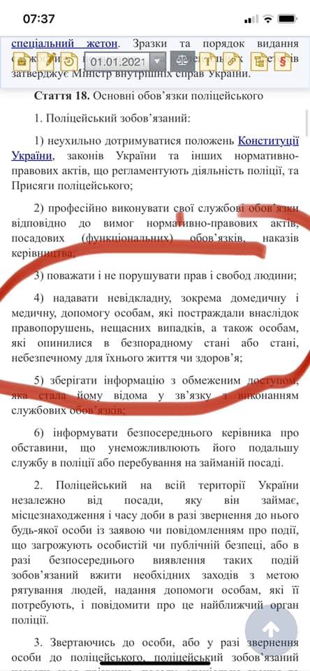 - Резюме, на 2х гарячих лініях Найполіції о 21:00 вже ніхто не бере трубки. Залишила скаргу на 102, окремо – подам в електронці в управління поліції. Завтра буде ще дзвінок на гарячі лінії. І очевидно очікую реакції тут і на зазначену мною адресу. ПІБ патрульний назвав «О. Лаган», але не знаходжу такого по НАЗК, тому може й неправильно назвав/ невірно записала. Я не думаю, що складно встановити патрульних, які о 20:50,забирали людину з Нечуя Левицького, 19…