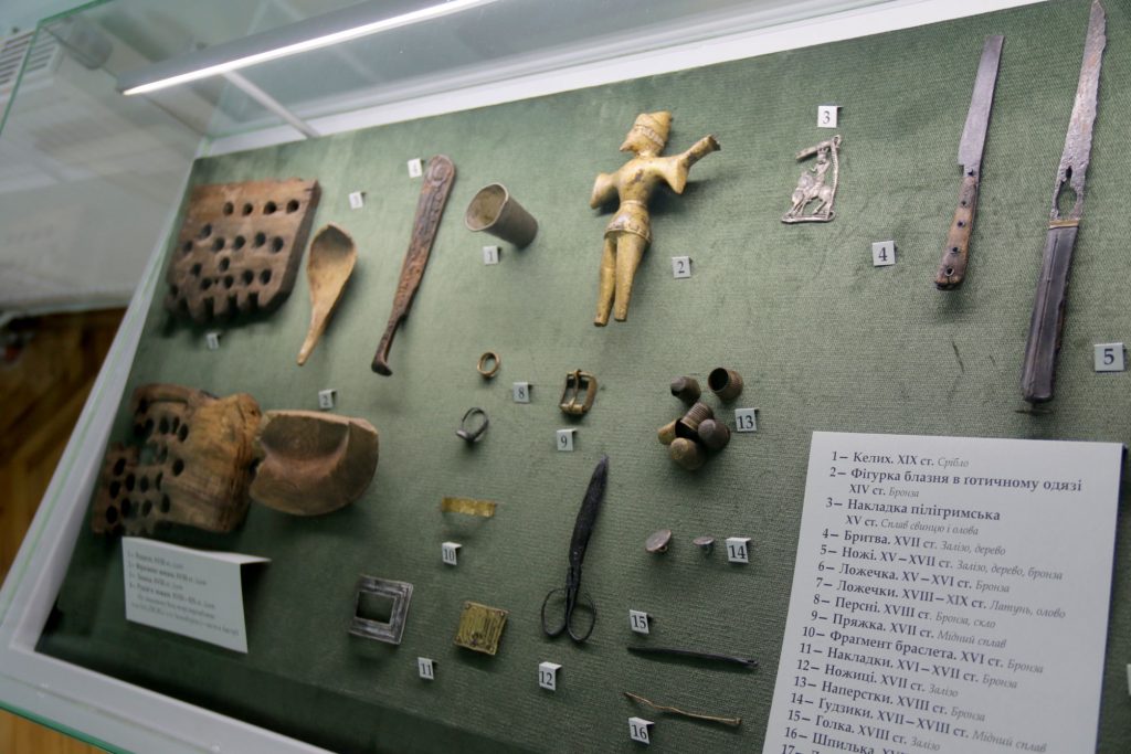 Серед унікальних знахідок — енколпіони ХІІ—ХІІІ ст. — хрести-релікварії, куди вкладали мощі святих; кахля ХV—ХVІ ст., орнаментована рельєфним геральдичним зображенням, де три стилізовані герби — Львова, Великого князівства Литовського та Польщі — об’єднані в один сюжет. Експонується срібна таця ХV—ХVІ ст.з найдавнішим, відомим історикам, гербом Львова на металі.Однак більшість репрезентованих артефактів є речами щоденного вжитку львів’ян, які жили в різні історичні епохи.