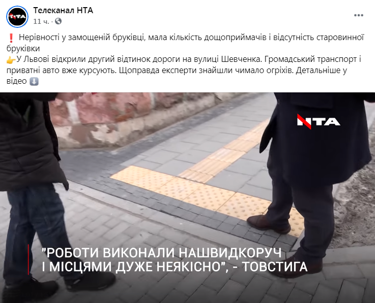 Нерівності у замощеній бруківці, мала кількість дощоприймачів і відсутність старовинної бруківки. У Львові відкрили другий відтинок дороги на вулиці Шевченка. Громадський транспорт і приватні автомобілі вже курсують. Щоправда експерти знайшли чимало огріхів.