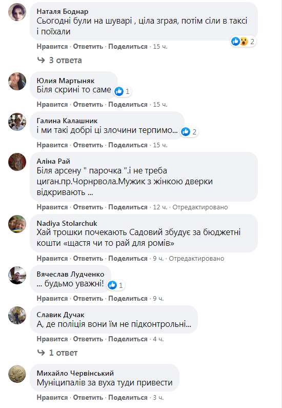 «Увага! Циганка і четверо малолітніх циганчат “працюють” біля “ВАМ”, “Сільпо”, вул. Шевченка, 358 а. Все б нічого, але на парковці вони перевіряють чи добре закриті двері, багажник, вікна, двоє малих “полюють” на виході з супермаркету, особливо чіпляються дітей з рюкзаками і літніх осіб. Правдоподібно їх мама, під деревом поруч зупинки все наглядає. Будьмо пильні!», – зазначається у дописі Andriy Maiovets на сторінці «Варта 1» у ФБ.