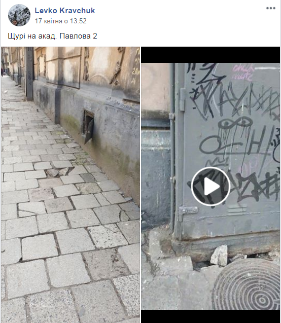«Щурі на вулиці Академіка Павлова, 2», – зазначається у коментарі до відео з місця події, яке оприлюднив на сторінці «Гаряча лінія міста Львова» Levko Kravchuk.