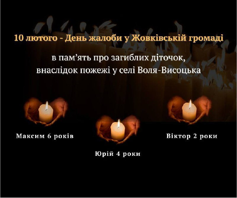 10 лютого оголошуємо Днем жалоби у Жовківській громаді, в памʼять про загиблих дітей – Максима, Юрія та Віктора.