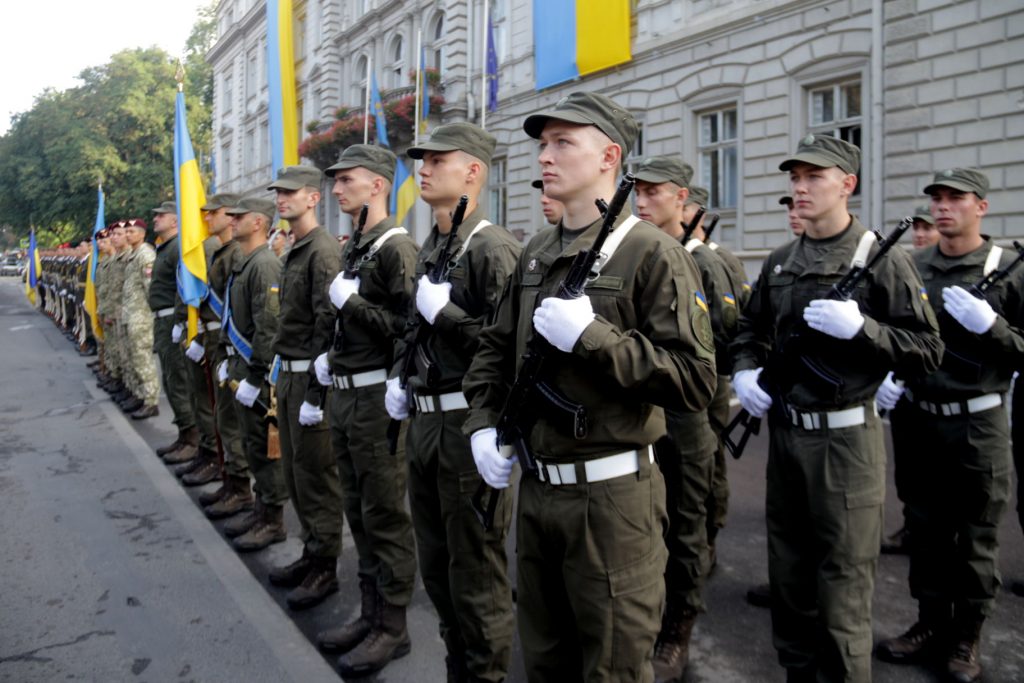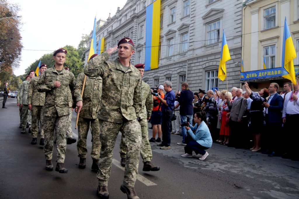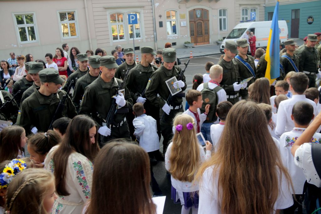 У межах заходу курсанти роти почесної варти Національної академії сухопутних військ імені гетьмана Петра Сагайдачного пройшли урочистим маршем, а вихованці центру науково-технічної творчості подарували військовослужбовцям листівки та браслети-обереги.