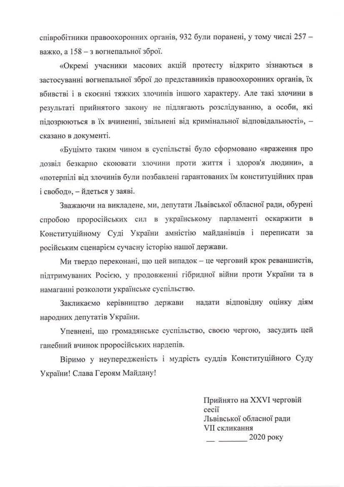 Завтра, 4 червня, на сесії Львівська обласна рада дасть оцінку 50 зрадникам, котрі оскаржують в Конституційному Суді України Закон про амністію учасників Революції Гідності.