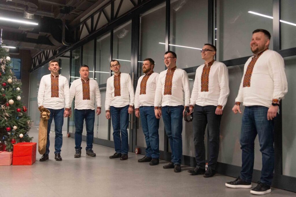 Львівська академічна чоловіча хорова капела «Дударик» та депутати Львівської міської ради заколядували у центральному офісі партії “Європейська Солідарність”.