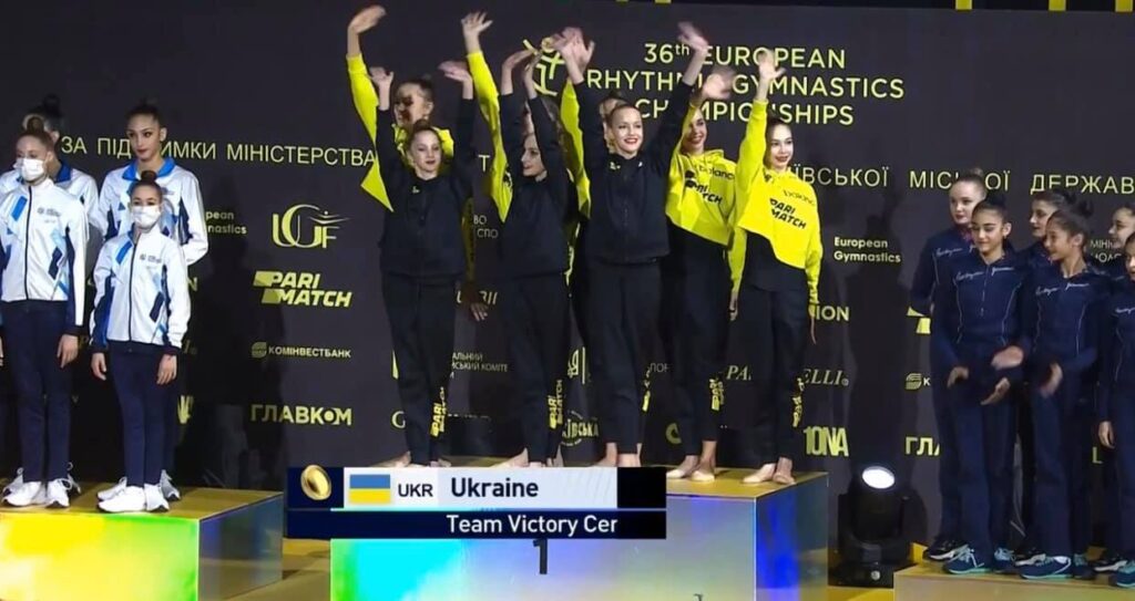 Щойно на Чеміпонаті Європи з художньої гімнастики завершилась церемонія нагородження у командних змаганнях, що включали групові вправи серед дорослих та індивідуальні серед юніорок.