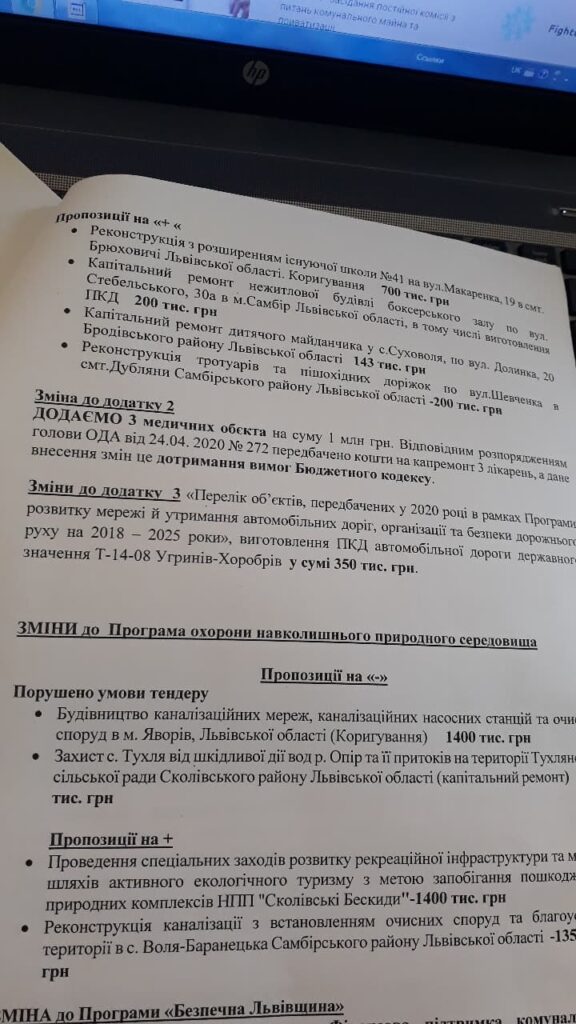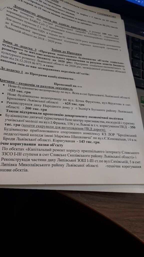 Окрім того, депутатським корпусом внесено зміни до Програми «Безпечна Львівщина» до заходу «Фінансова підтримка комунального підприємства Львівської обласної ради «Охорона та захист Львівщини» в частині корегування можливості видатків для охорони об’єктів медичних закладів спільної власності територіальних громад області.