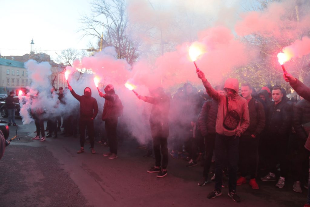 Після спалення фаєрерів активісти заспівали гімн України та розійшлись, проте, запевнили, що здаватись вони не збираються.