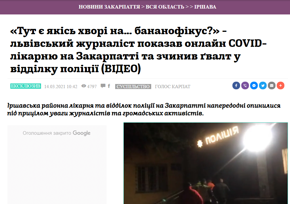 Позначки: Іршава, журналіст, Коронавірус, лікарня, поліція, Стахів