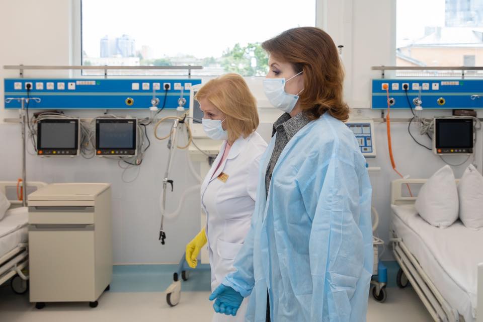 Дружина п’ятого президента України Марина Порошенко передала Олександрівській лікарні 5 апаратів штучної вентиляції легень, 150 захисних костюмів та 40 пульсоксиметрів.
