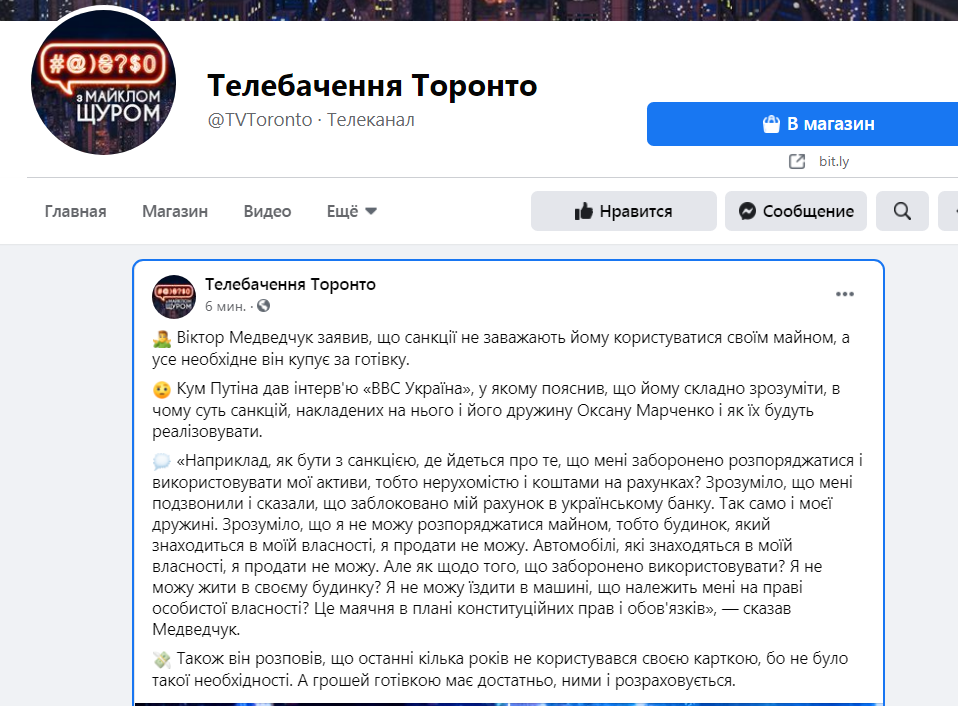 Віктор Медведчук заявив, що санкції не заважають йому користуватися своїм майном, а усе необхідне він купує за готівку. Кум Путіна дав інтерв’ю «ВВС Україна», у якому пояснив, що йому складно зрозуміти, в чому суть санкцій, накладених на нього і його дружину Оксану Марченко і як їх будуть реалізовувати.