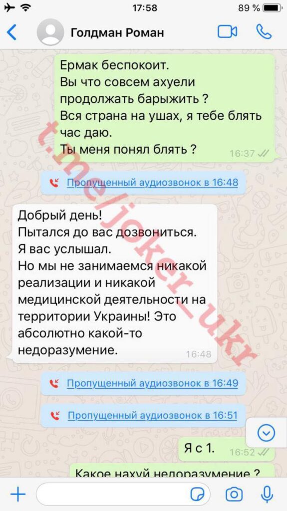Після цього інформація про Романа стала швидко розходиться серед еліти. Про всяк випадок повідомляю, що Роман не є медиком, не має медичної освіти і не представляє медичні установи Ізраїлю”, – повідомляє «Джокер».