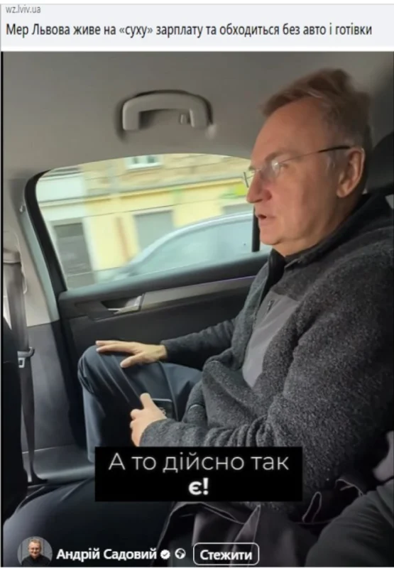 У мережі звернули увагу на те, що Садового возить водій автомобілем.