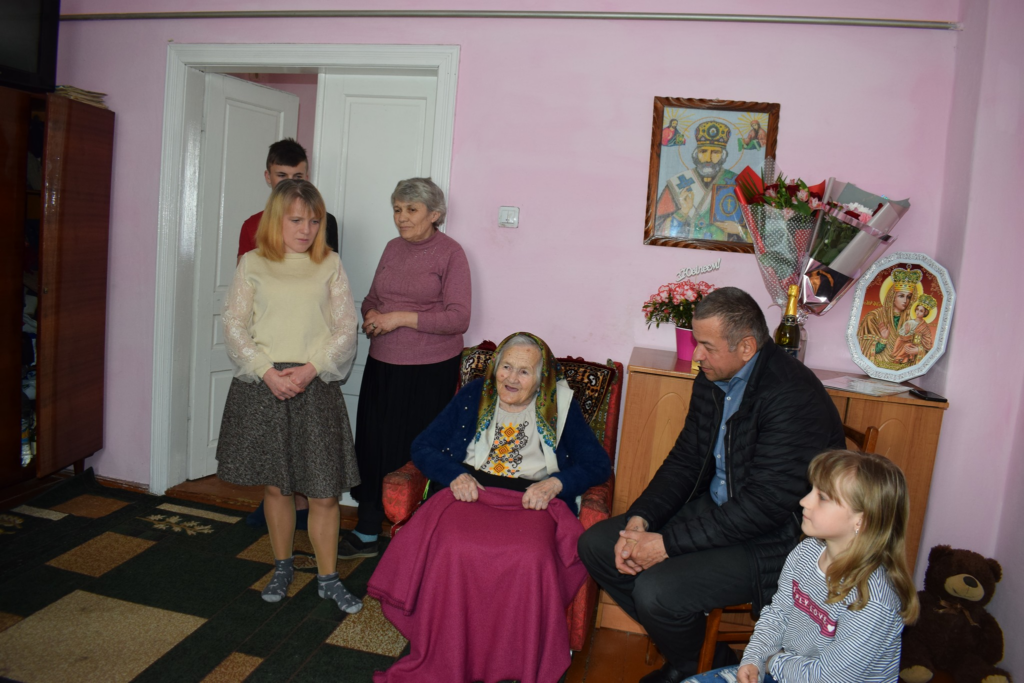 Бабцю Юстину приїхали привітати міський голова Ігор Трухим, керівниця гуманітарного відділу Ольга Коваль, староста Торчиновицького старостинського округу Зіновій Припін.
