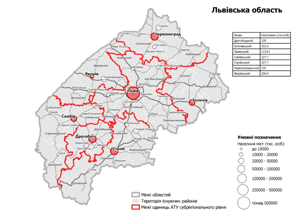 Львівщину поділять на 7 частин