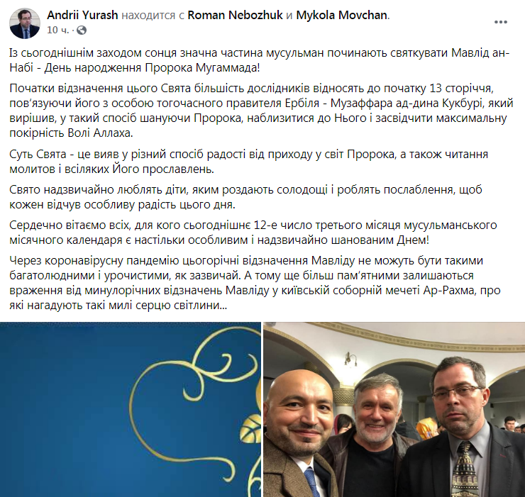 Через коронавірусну пандемію цьогорічні відзначення Мавліду не можуть бути такими багатолюдними і урочистими, як зазвичай»,- зазначається у дописі.